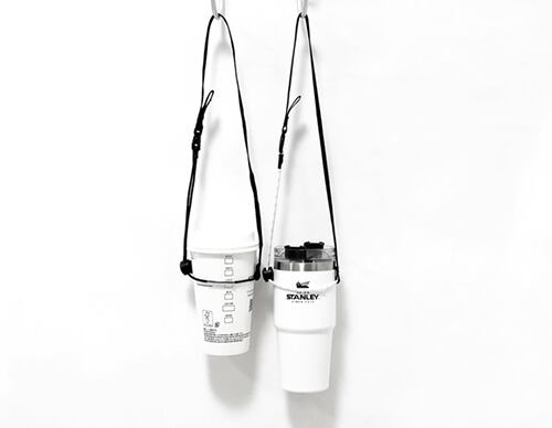 カップドリンクやペットボトルを持っていても両手が空くホルダー。
